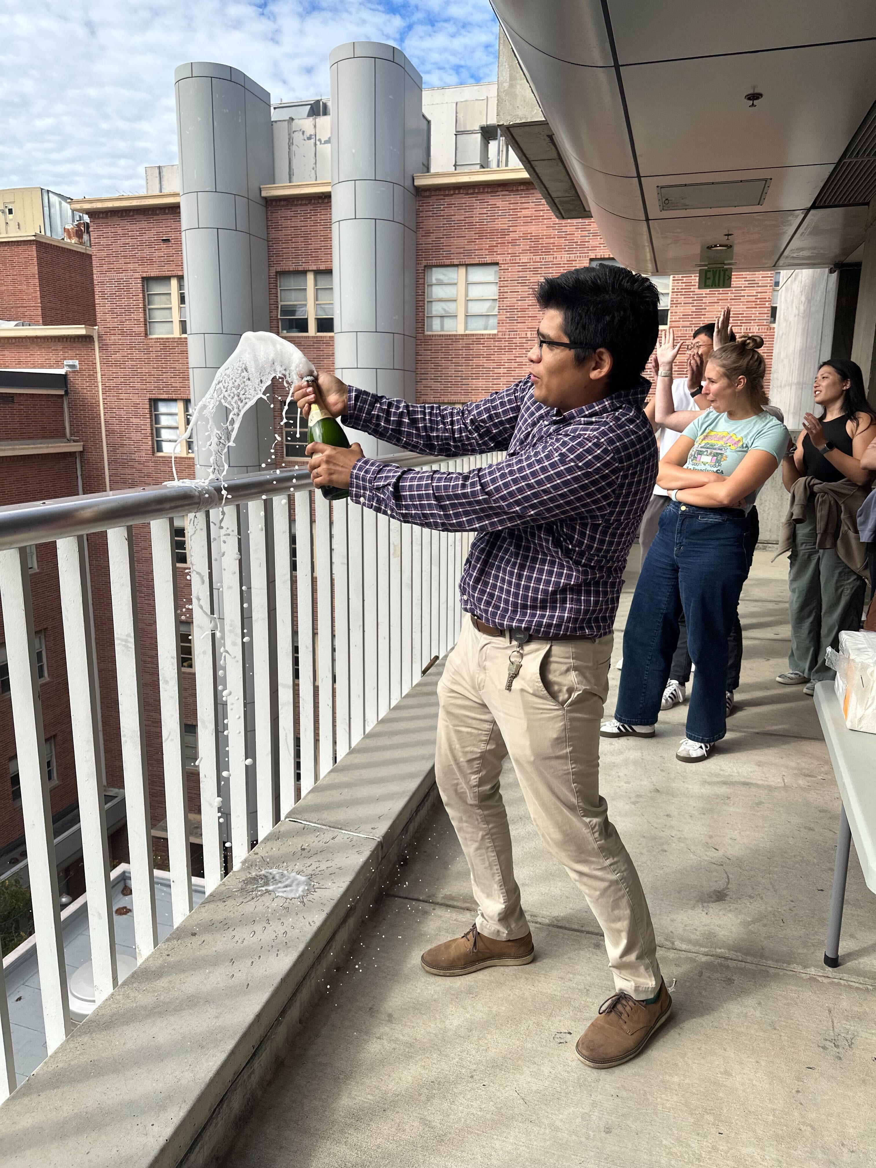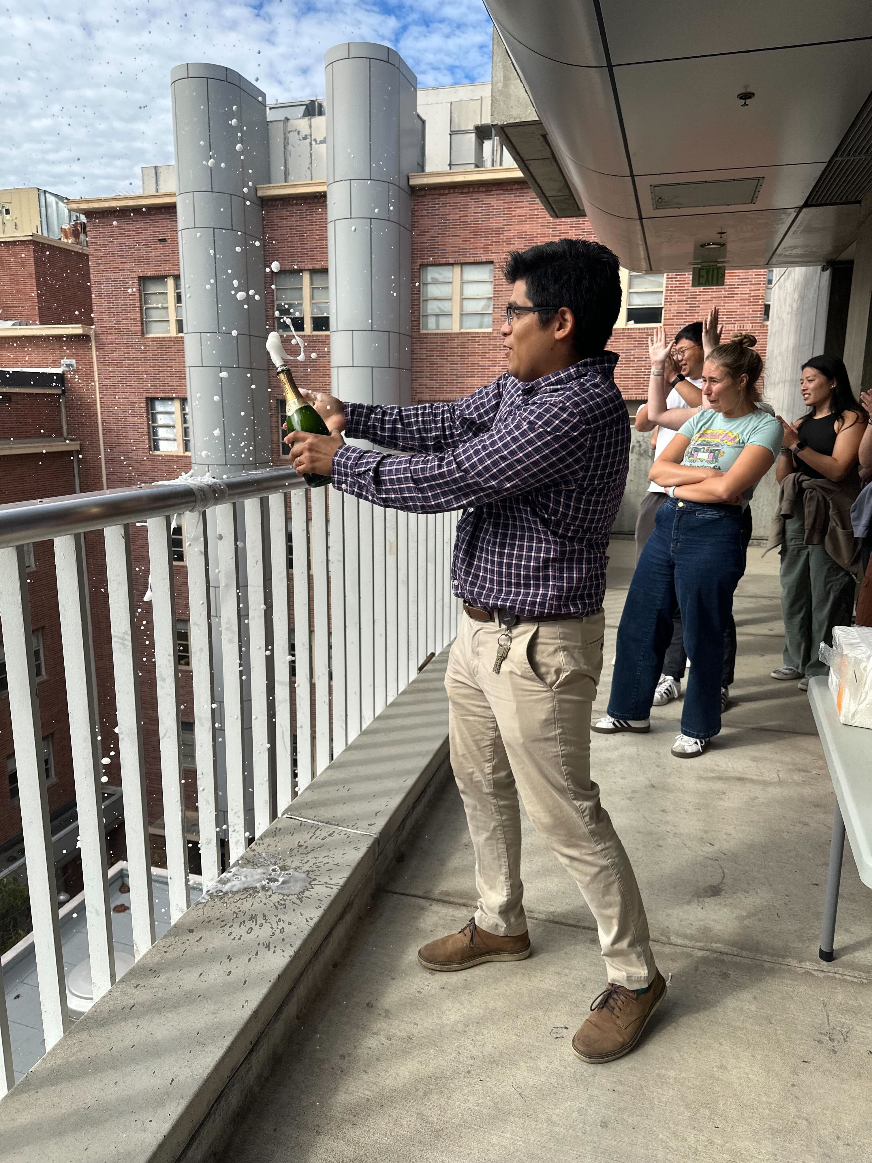 Congratulations to Joseph for giving an excellent exit seminar on his work on custom poly(oxazolines)! We celebrated with an immaculate champagne pop.
